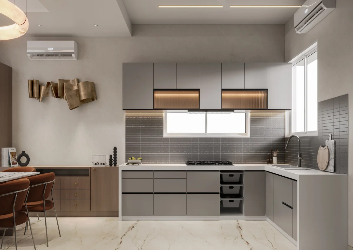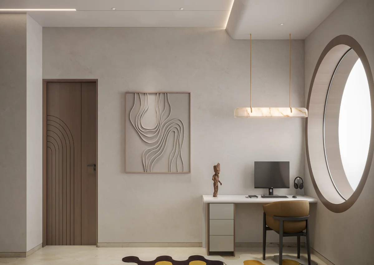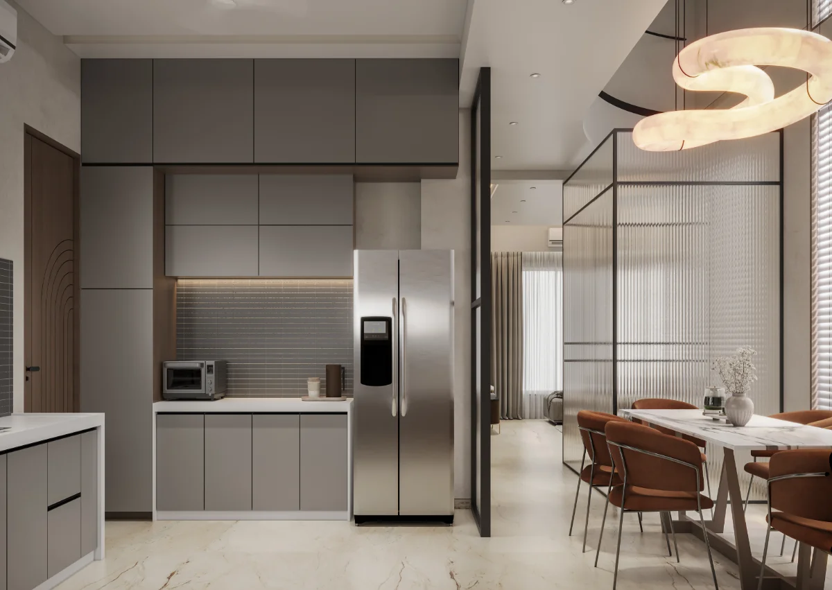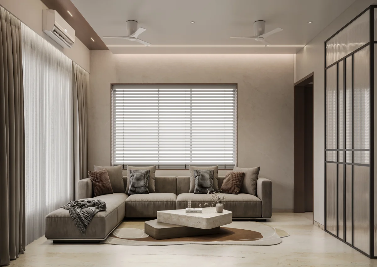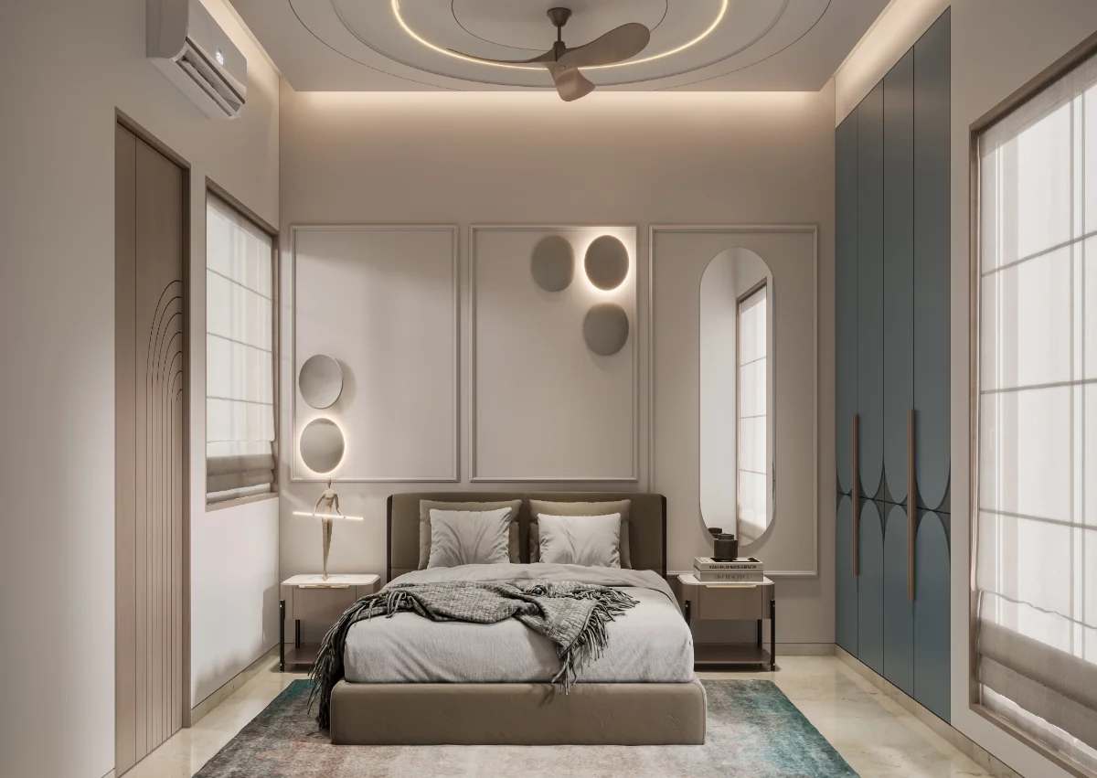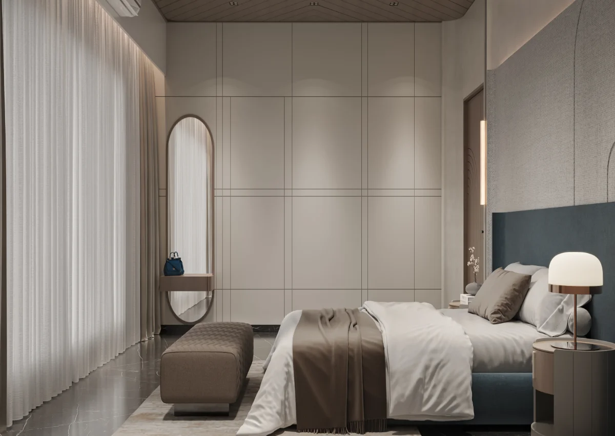 A simple and retro style house structure has been prepared by giving a roofed elevation of a modern bungalow with a plot area of 1978 sq.ft. In which 4 bedrooms, kitchen and master living have been built in which the dining area has been built in double heigh A teacher’s family whose simple requirement is to design a bedroom with a master toilet in each bedroom with an attached balcony.