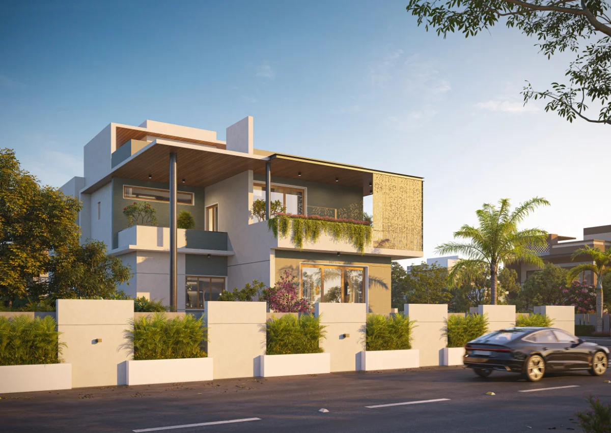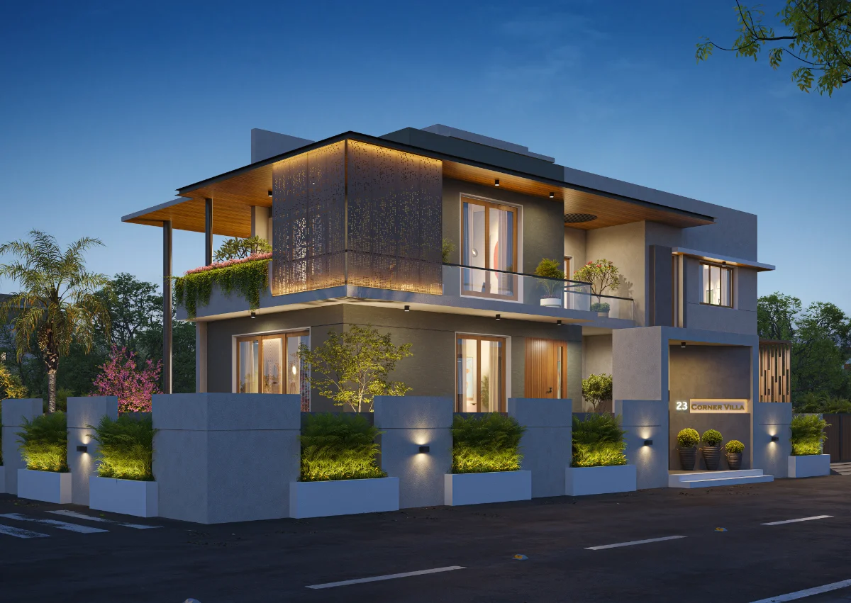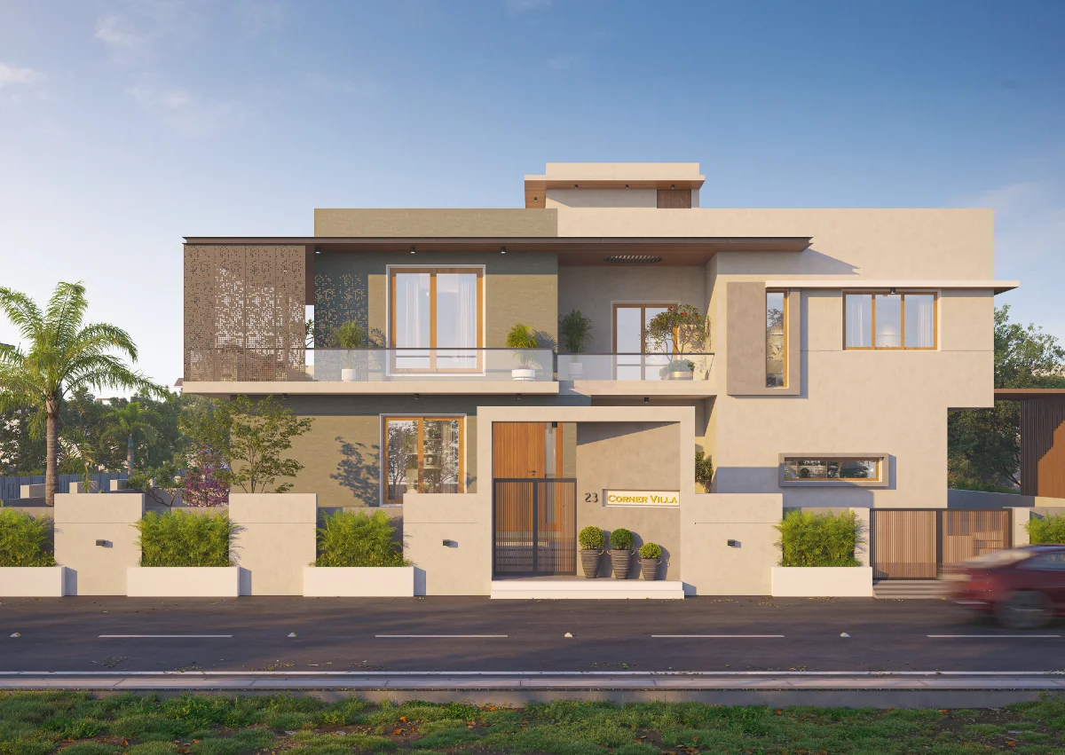 This beautifully designed house is built on a 4882.5 Sq.Ft. plot with a spacious exterior that includes a large landscape and ample parking area. The layout features five bedrooms, a living room, a kitchen, and a comfortable family lounge for relaxation. The master bedroom comes with an attached balcony, offering pleasant outdoor views. The overall design ensures a perfect balance of space, comfort, and functionality.