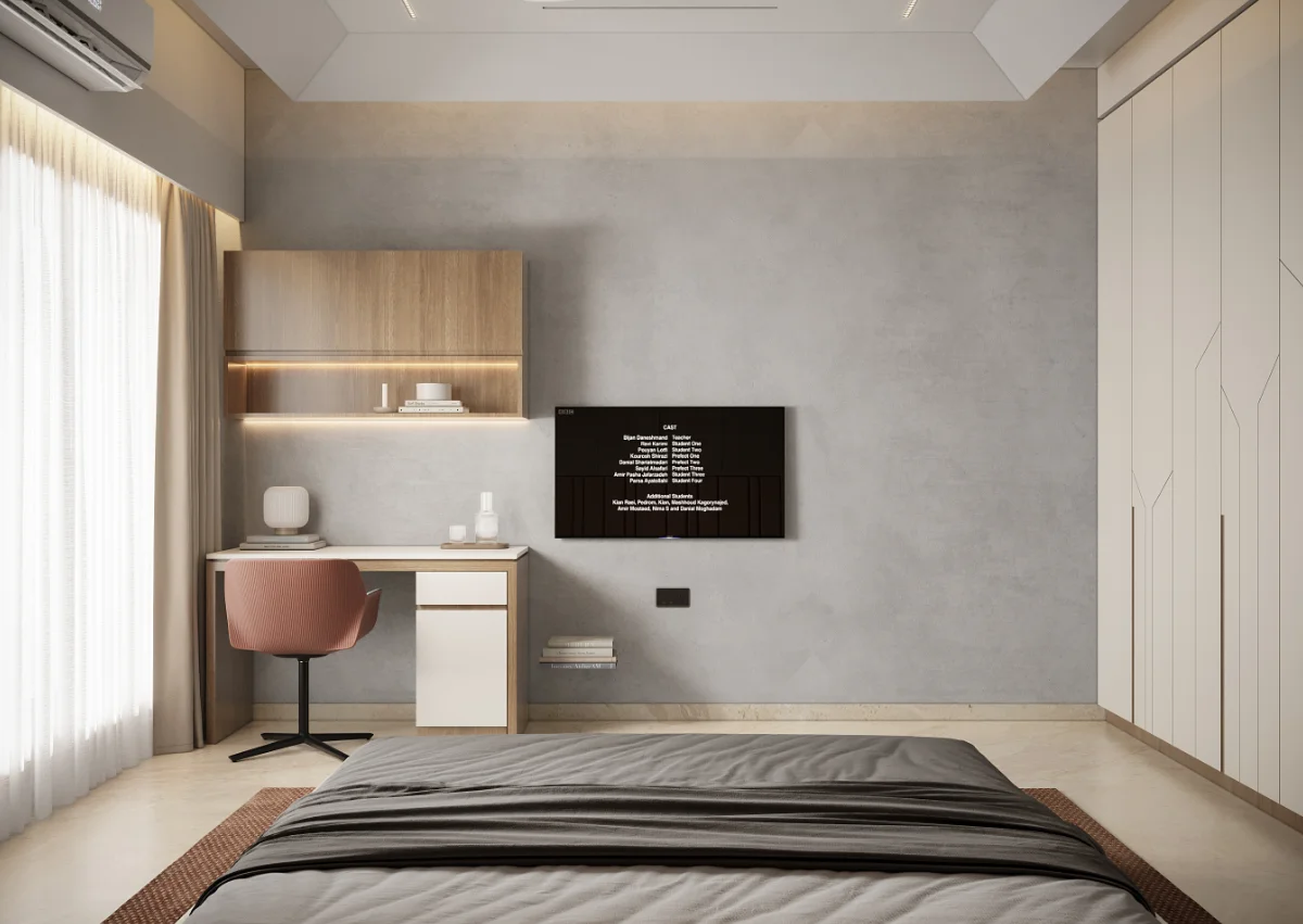 The interior of this 3BHK flat is designed for comfort and functionality with a spacious layout. It includes three bedrooms, one of which serves as a guest room. The master bedroom comes with a private balcony, offering a relaxing space. Another bedroom also has balcony access, ensuring fresh air and natural light. The living area and kitchen are well-planned, providing a perfect setup for daily living.
