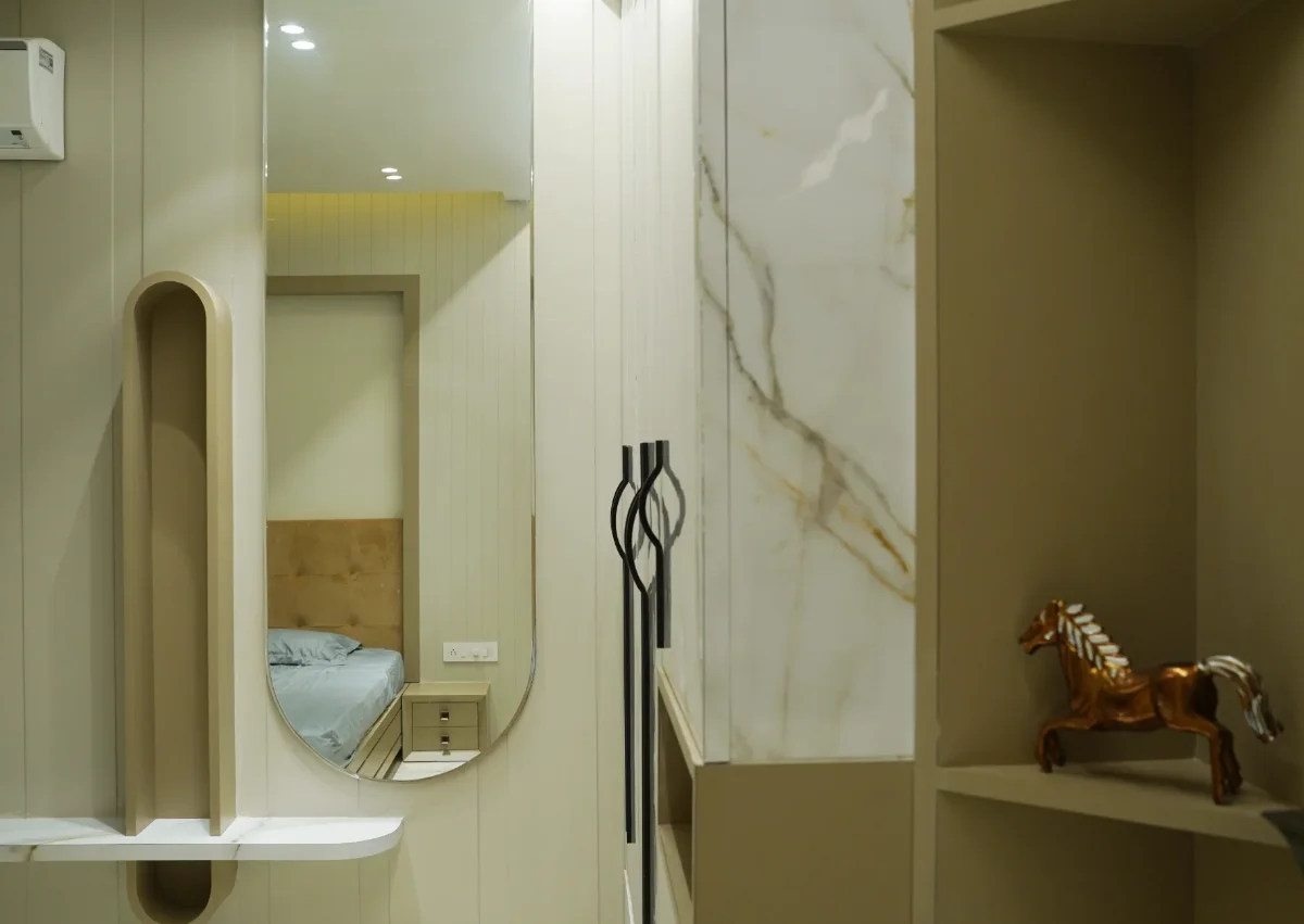 This 3BHK flat features a modern-style interior designed with clean lines and functional spaces. Each room is thoughtfully planned to ensure comfort and openness. The flat includes attached balconies with every bedroom, allowing natural light and fresh air into the home. The living area, kitchen, and bedrooms all reflect a stylish yet practical approach, creating a comfortable space for daily living.